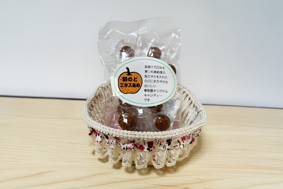 梨の自然な甘みを生かした、しっとりとした食感の美味しいあめです。
